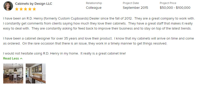Learn more about our superior quality and service and how you can sell R.D. Henry’s cabinetry lines.